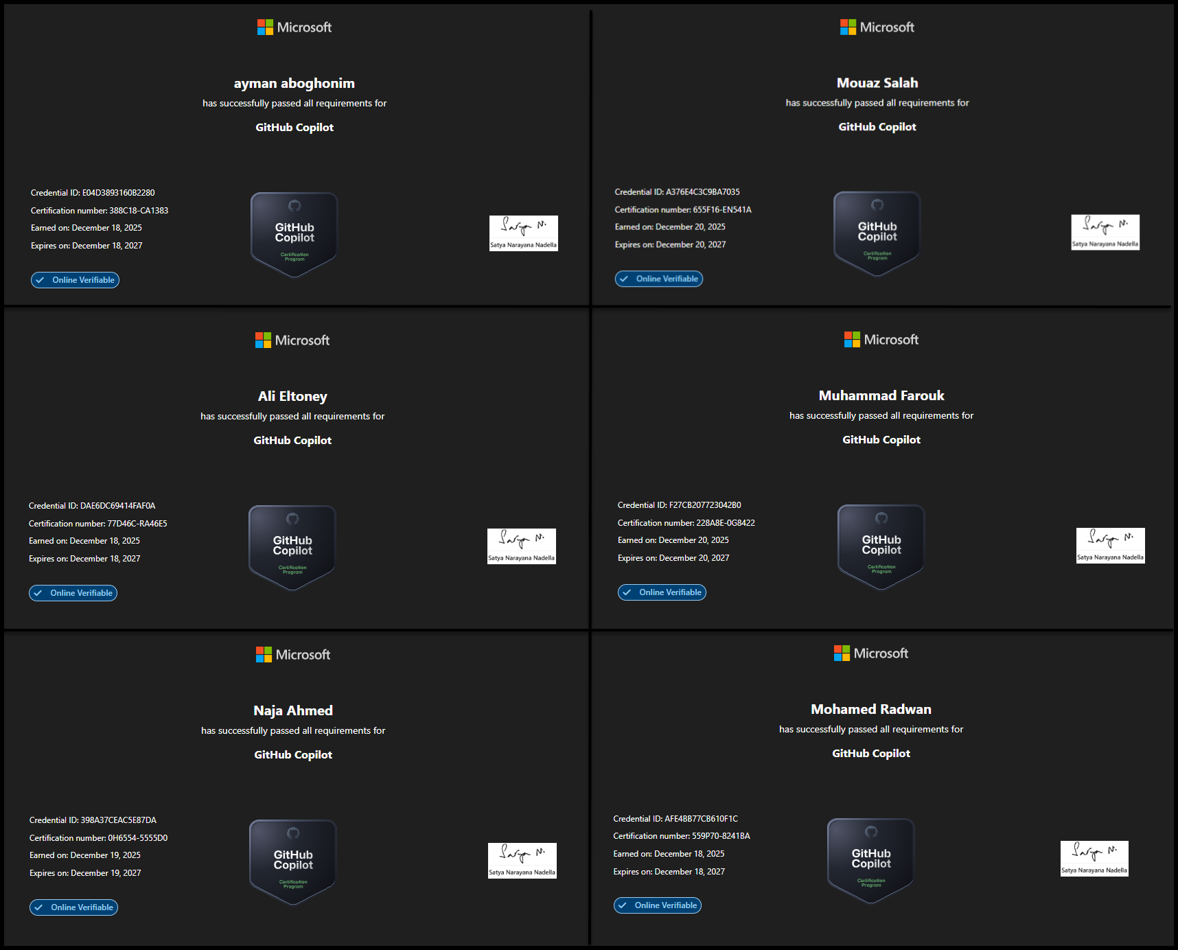 Below are some of the community members who took part in this journey and earned their certifications, along with their public profiles and shared credentials: